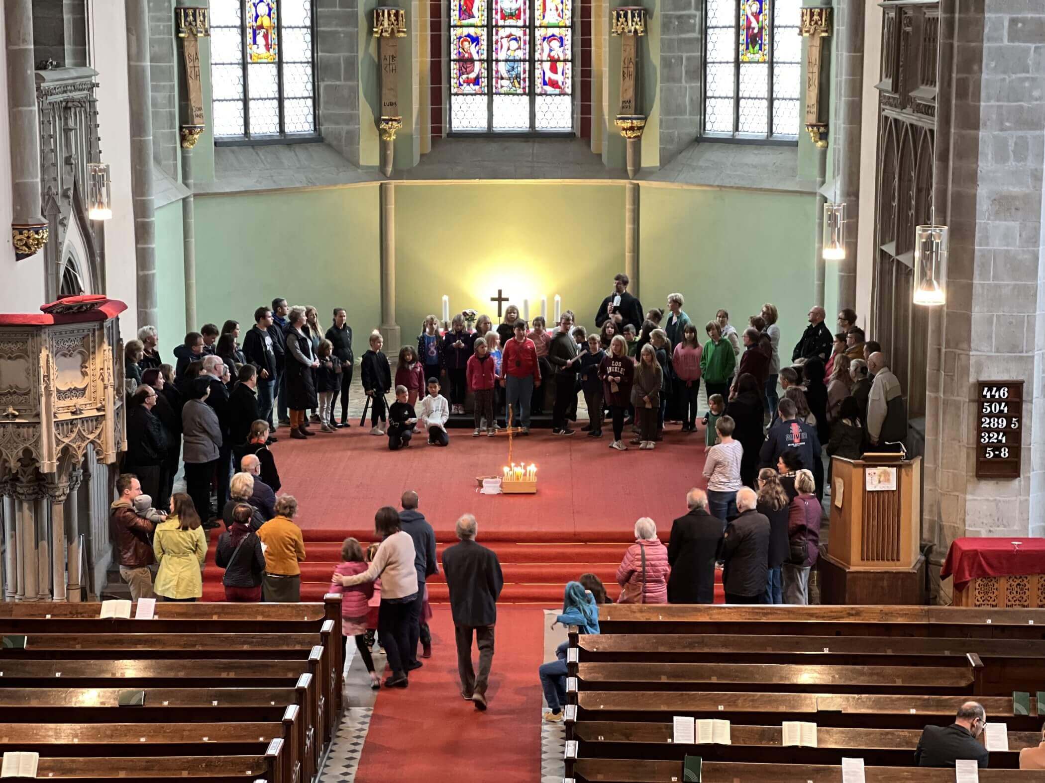 Am nächsten Tag begrüßten die Kinder viele Besucherinnen und Besucher im Gottesdienst, den sie zusammen mit Susanne Kiel vorbereitet hatten.