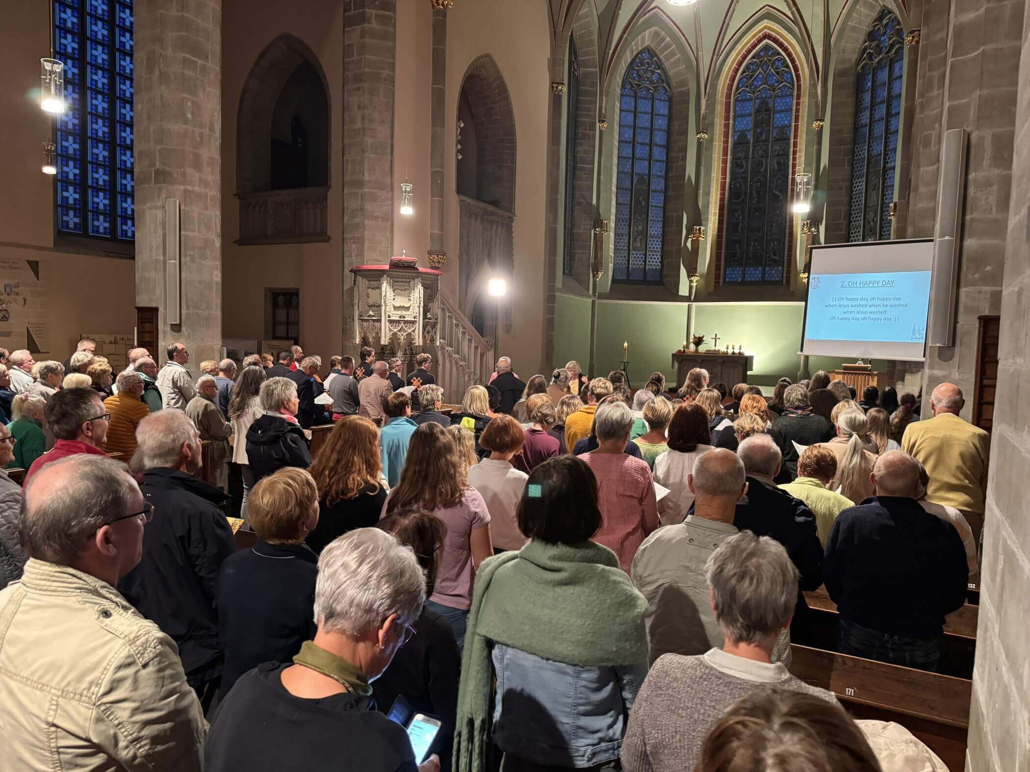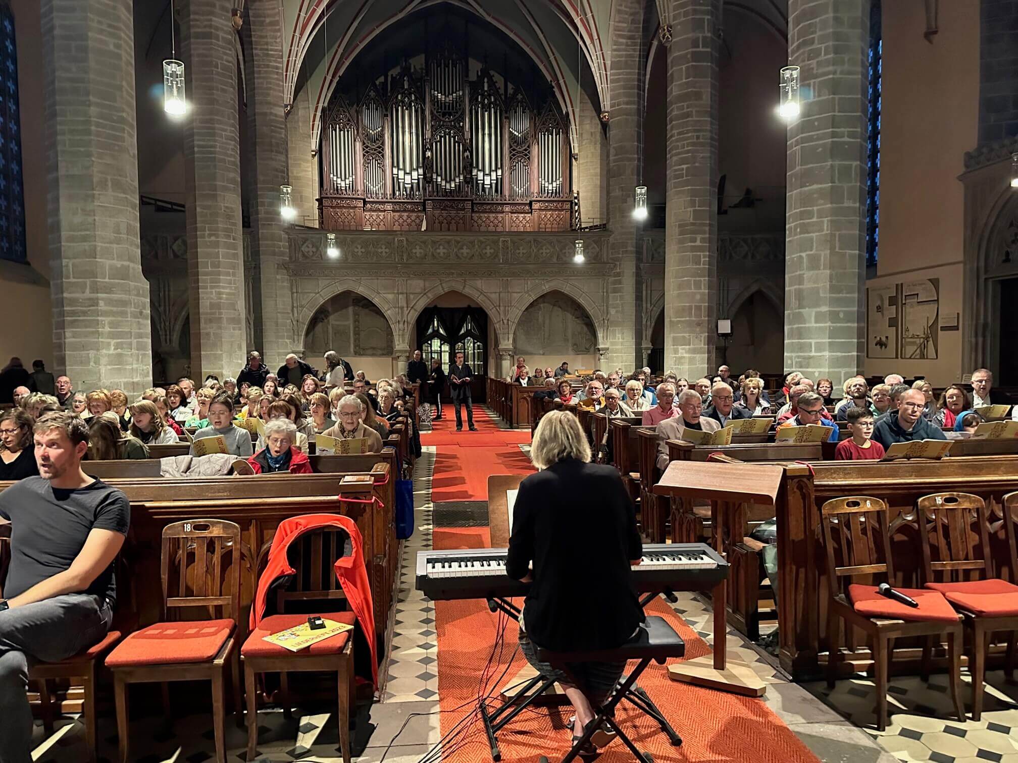 Am Tag der deutschen Einheit lud die Kirchenmusikdirektorin Martina Apitz zum gemeinsamen Singen für die Aktion Deutschland singt und klingt in die ST. Jakobskirche ein. Viele Menschen folgten dem Aufruf und auch der MDR berichtete live davon. Hier ein paar Bildeindrücke.