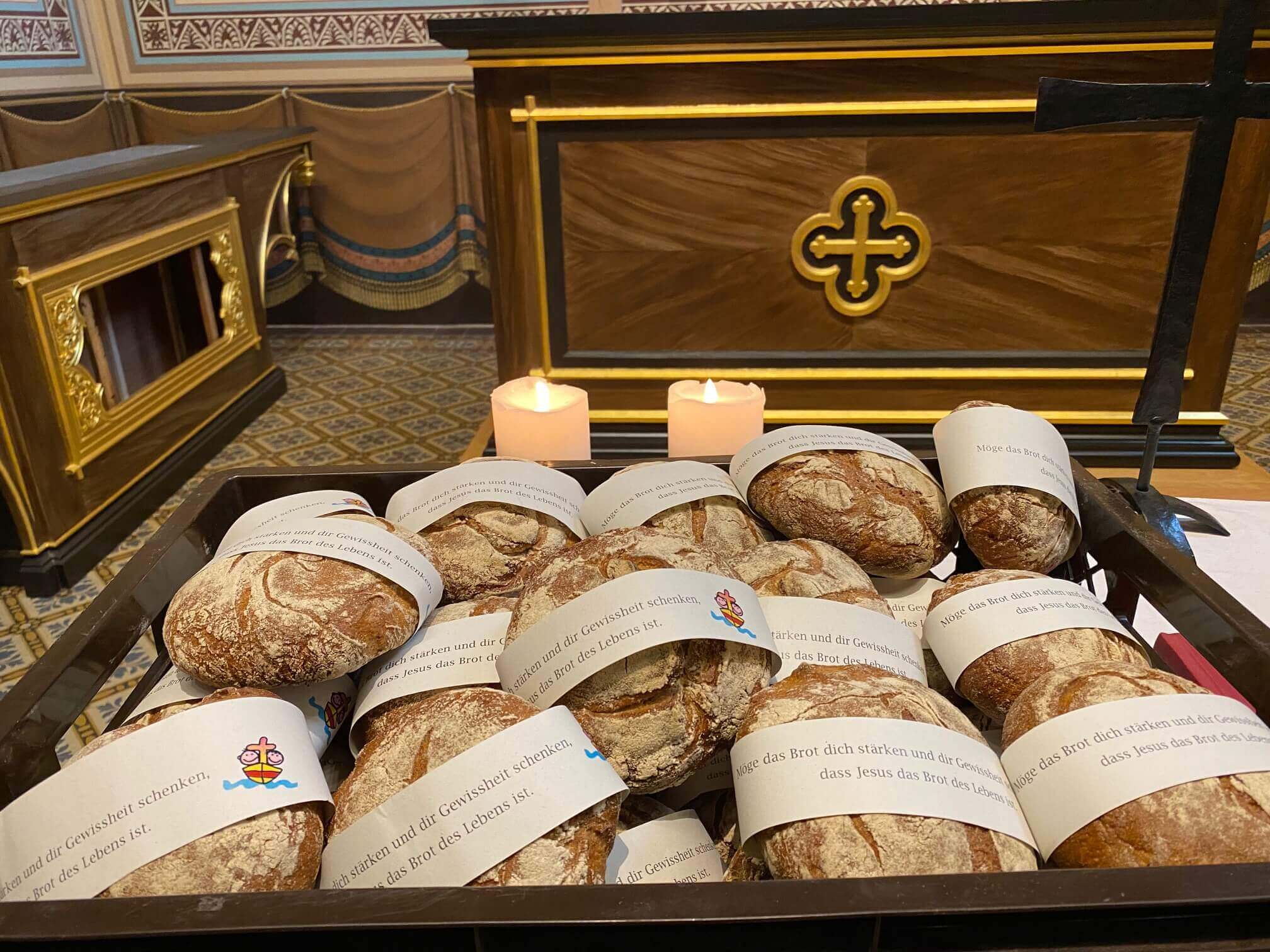 Am Ausgang konnte jede Familie ein Brot mit einem Segenswort mitnehmen.