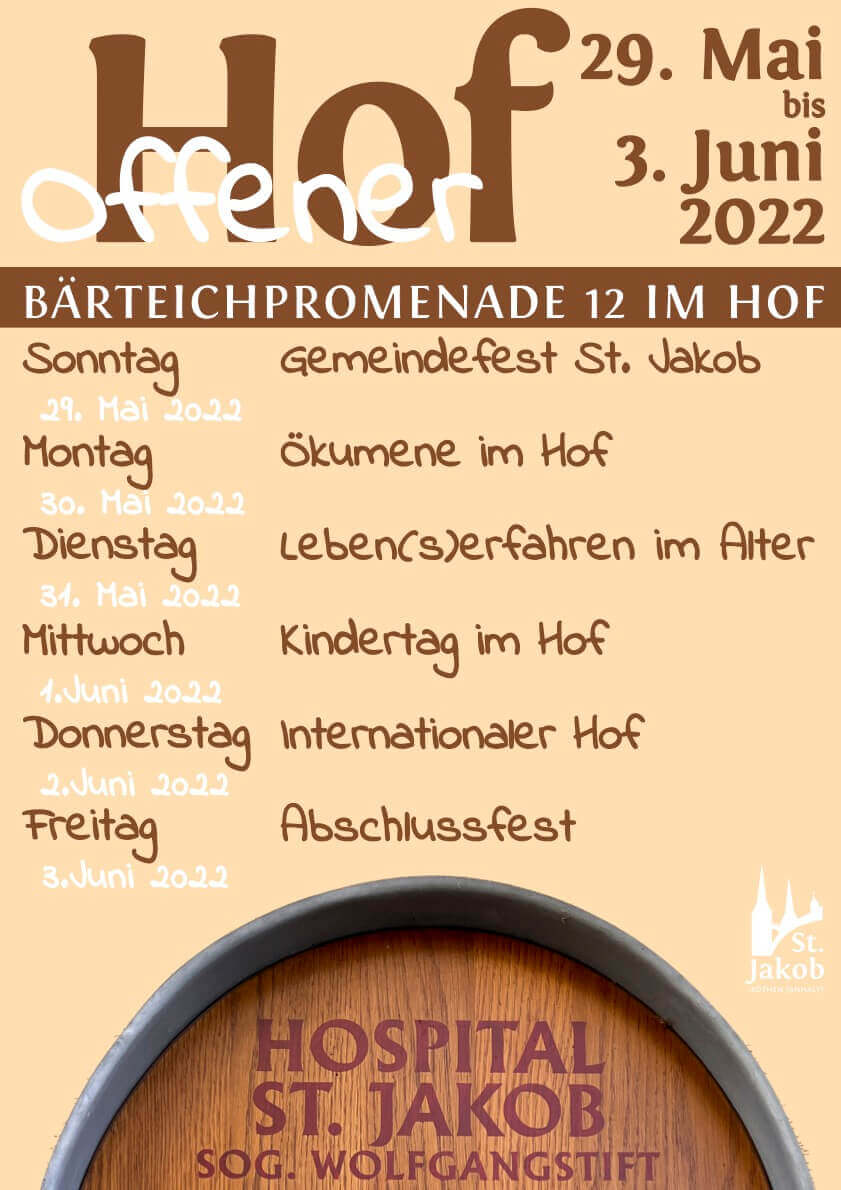 Freitag 3.6.2022: von 15 bis 17 Uhr gestaltet das Kinder- und Jugendhilfezentrum Arche den Nachmittag für Kinder; Abends findet der Abschluss der Woche statt.